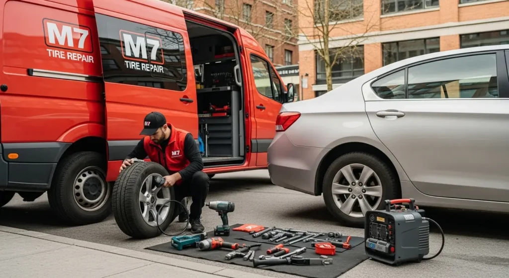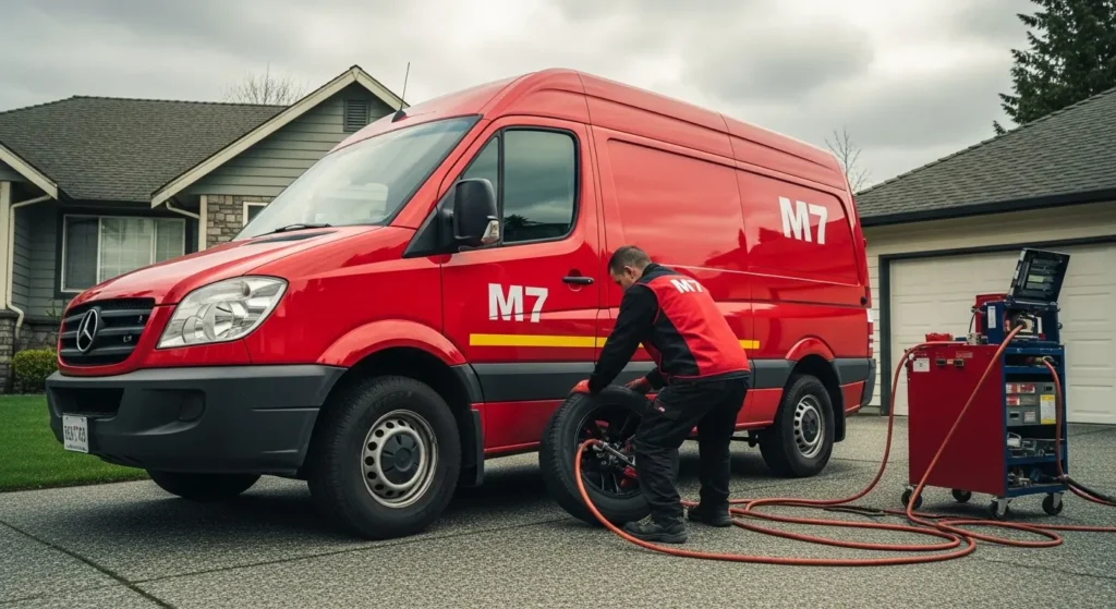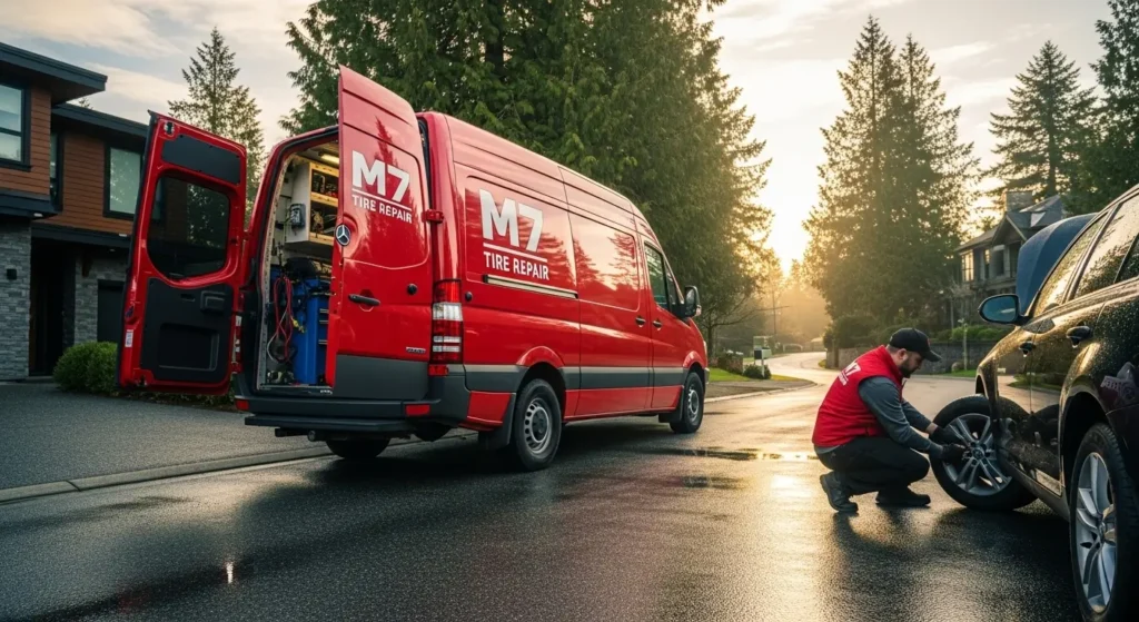 Services covering a wider area across Metro Vancouver may charge more for locations farther from their base. However, established providers like M7 Mobile Tire Service offer transparent, competitive pricing across all Vancouver neighborhoods, from Kitsilano to East Vancouver.