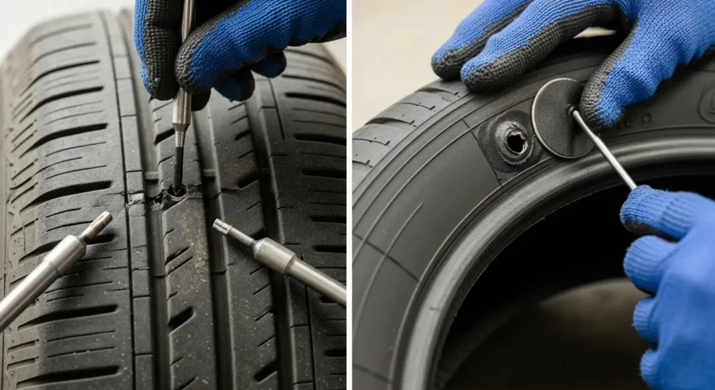 ($45-$75 in shops, $120-$180 mobile): The gold standard for tire repair combines both methods: a plug fills the puncture while a patch seals the inner liner. This is the most reliable long-term solution and is recommended by most tire manufacturers for punctures in the repairable zone.